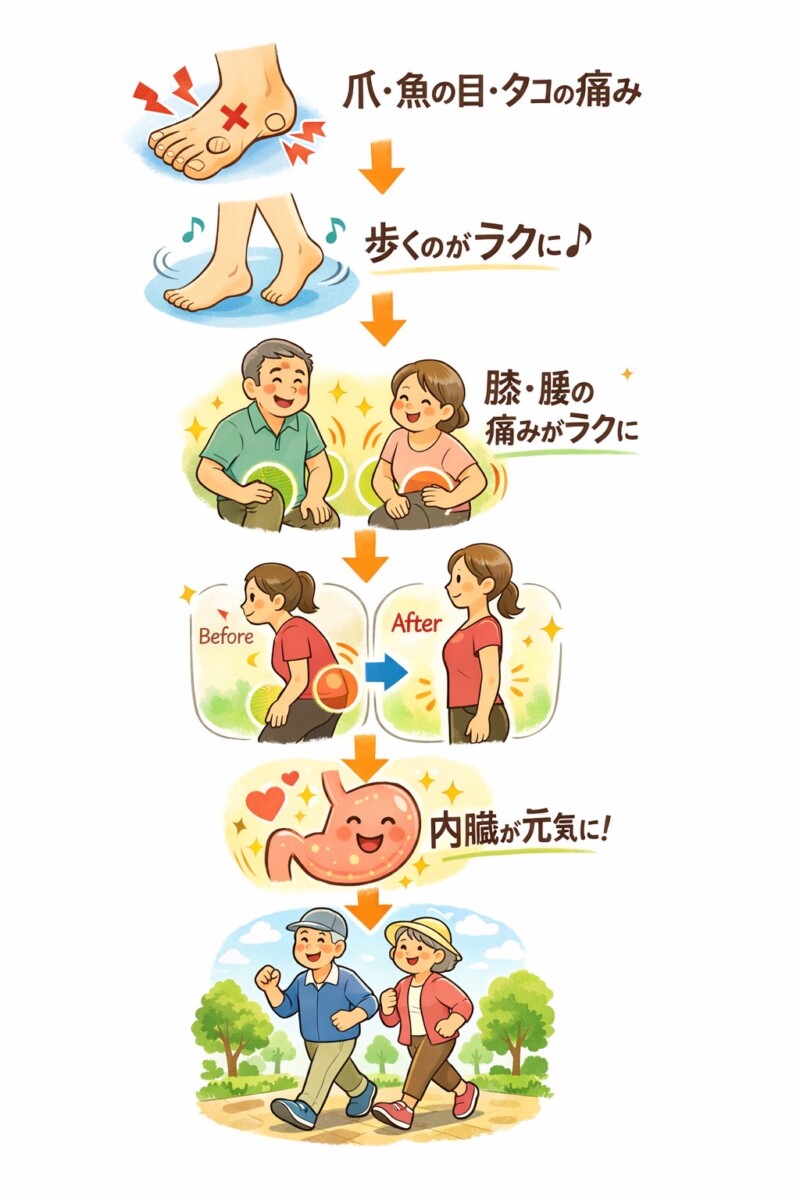 ①フットケアで爪・タコ・魚の目の悩みが改善